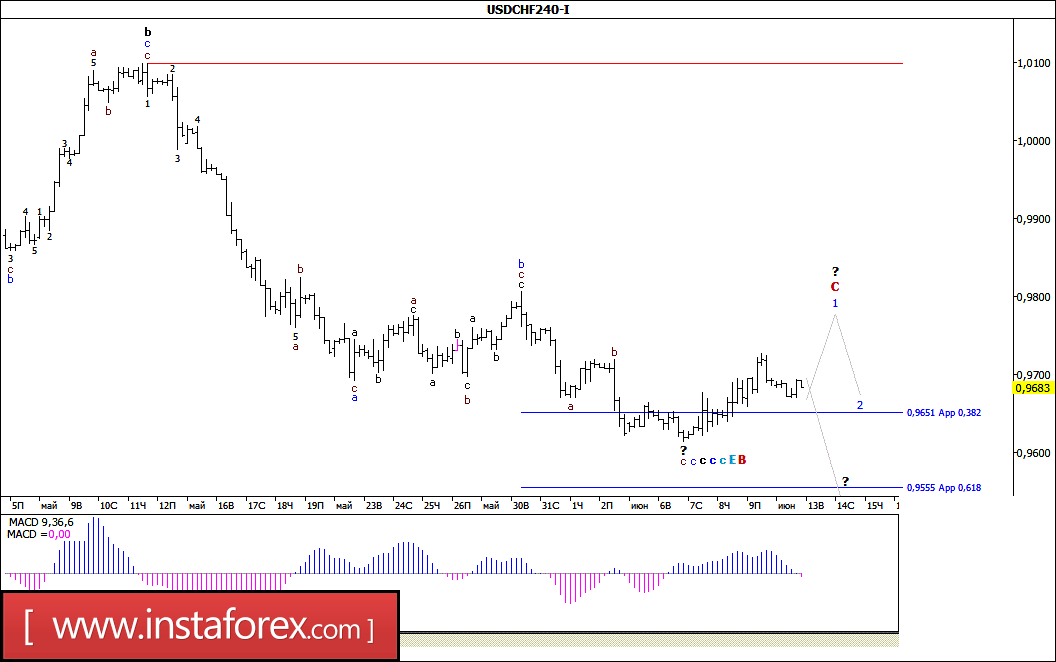 Волновой анализ валютной пары USD/CHF за 13 июня 2017 года