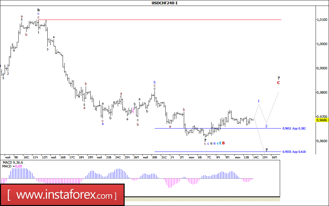 Волновой анализ валютной пары USD/CHF за 14 июня 2017 года