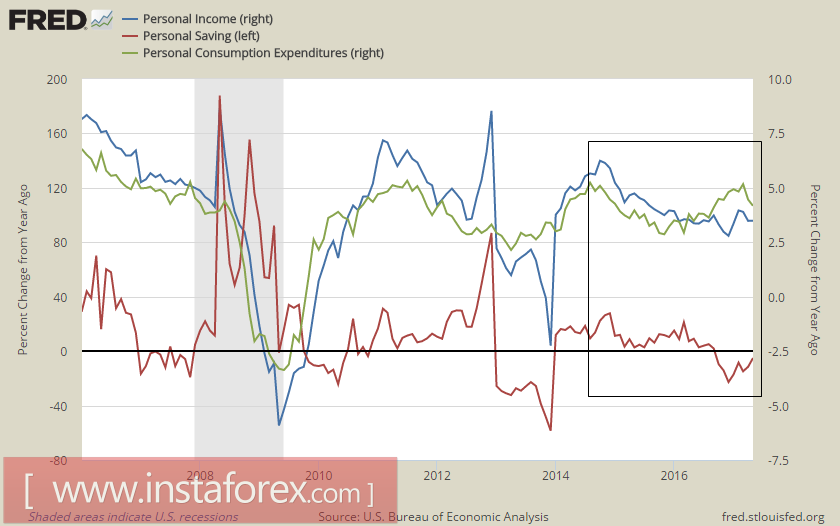 Какие есть внутренние резервы у правительства для того, чтобы взять ситуация под контроль? Их немного, а динамика развития ситуации пока никак не может считаться положительной. В пятницу Министерство торговли сообщило, что рост индекса цен на личное потребление в мае составил 1.4%, что заметно хуже 1.7% месяцем ранее, а рост базового индекса составил те же 1.4%, что является худшим показателем с 2015 г. В последние два года падают темпы роста как доходов, так и расходов, а уровень сбережений опустился на отрицательную территорию.