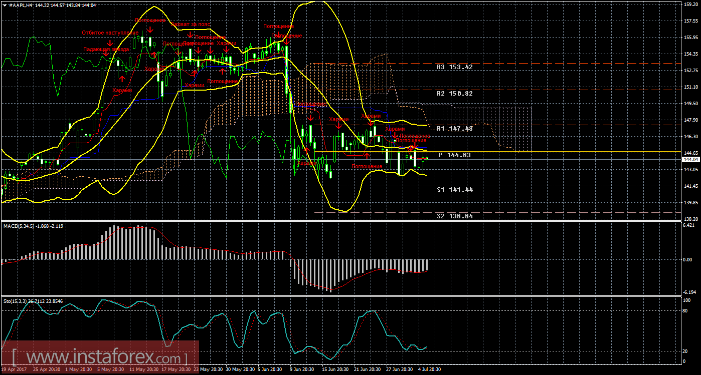Технический и свечной анализ акций Apple на 6 июля 2017 года