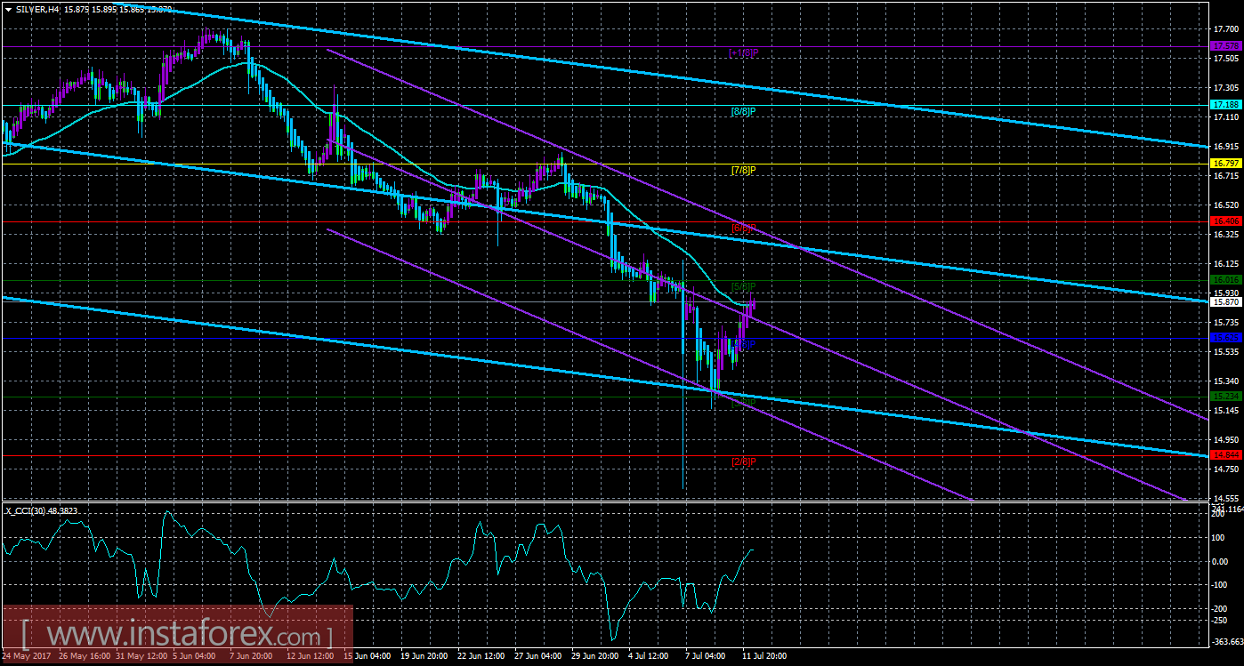 Техническая картина инструмента SILVER по системе «Каналы регрессии» за 12 июля 2017 года