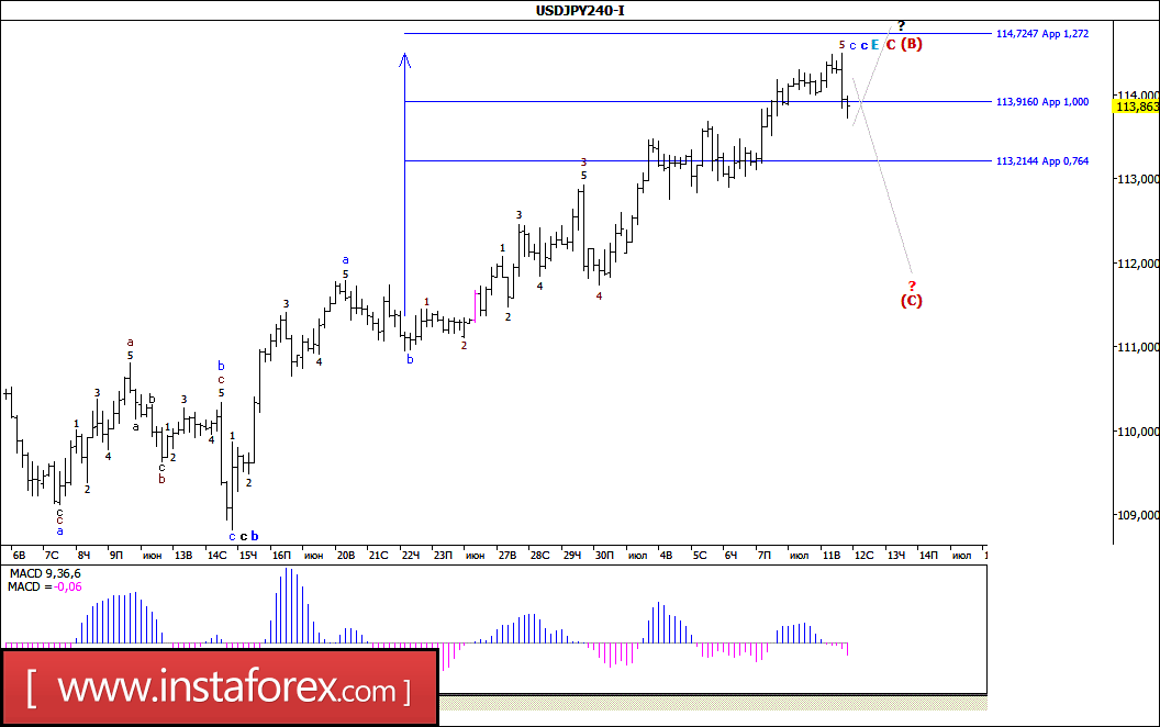 Волновой анализ валютной пары USD/JPY за 12 июля 2017 года