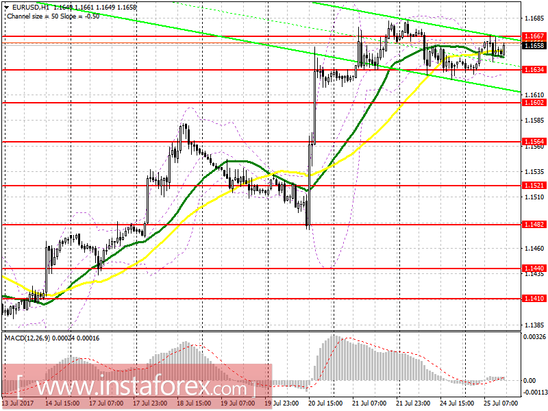 Ситуация в европейской валюте не изменилась. Очередная попытка прорыва выше уровня 1.1667 в первой половине дня потерпела неудачу. Лишь закрепление на этом уровне, возможно, после выхода слабой статистики по США, приведет к обновлению месячных максимумов 1.1708 и 1.1753. В случае возврата в диапазон поддержки 1.1634, покупки рекомендую отложить до обновления уровня 1.1602.