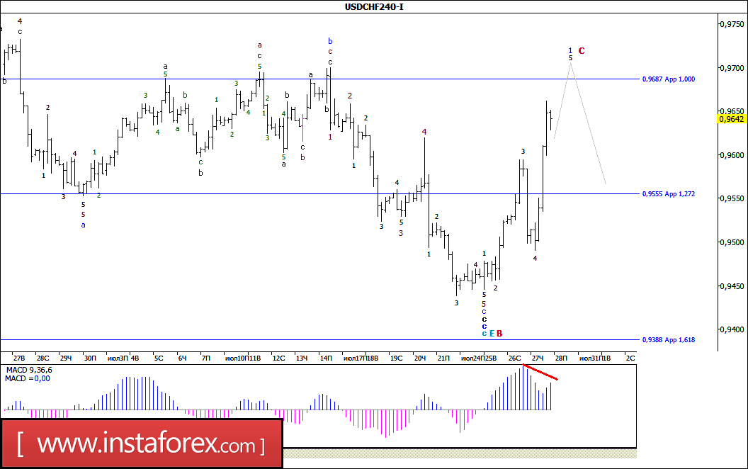 Волновой анализ валютной пары USD/CHF за 28 июля 2017 года