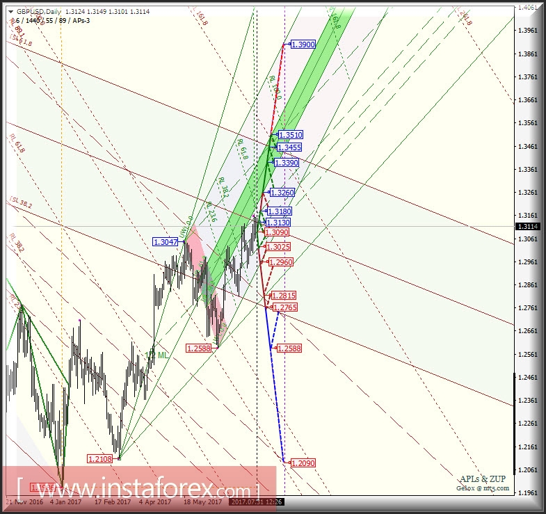 GBP/USD Daily. Перспективы развития движения в августе-сентябре 2017 г. Анализ APLs & ZUP