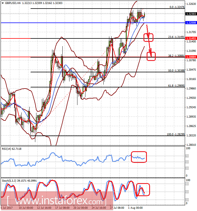 Пара GBPUSD консолидируется выше уровня 1.3200 в ожидании итогов заседания Банка Англии по денежно-кредитной политике. Если ставки будут оставлены на прежнем уровне и в комментариях как банк, так и его руководитель М. Карни дадут понять, что еще рано их поднимать, стерлинг несомненно окажется под сильным давлением и может упасть к 1.3150 после преодоления отметки 1.3200 с перспективой снижения уже завтра на волне хороших данных по занятости из США к 1.3090.