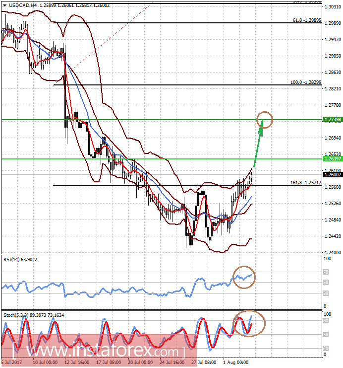 Пара USDCAD торгуется выше уровня 1.2570. Мы ожидаем, что коррекционное снижение цен на нефть, а также позитивная завтрашняя статистика будут способствовать дальнейшему повышению пары к 1.2640 и 1.2740.