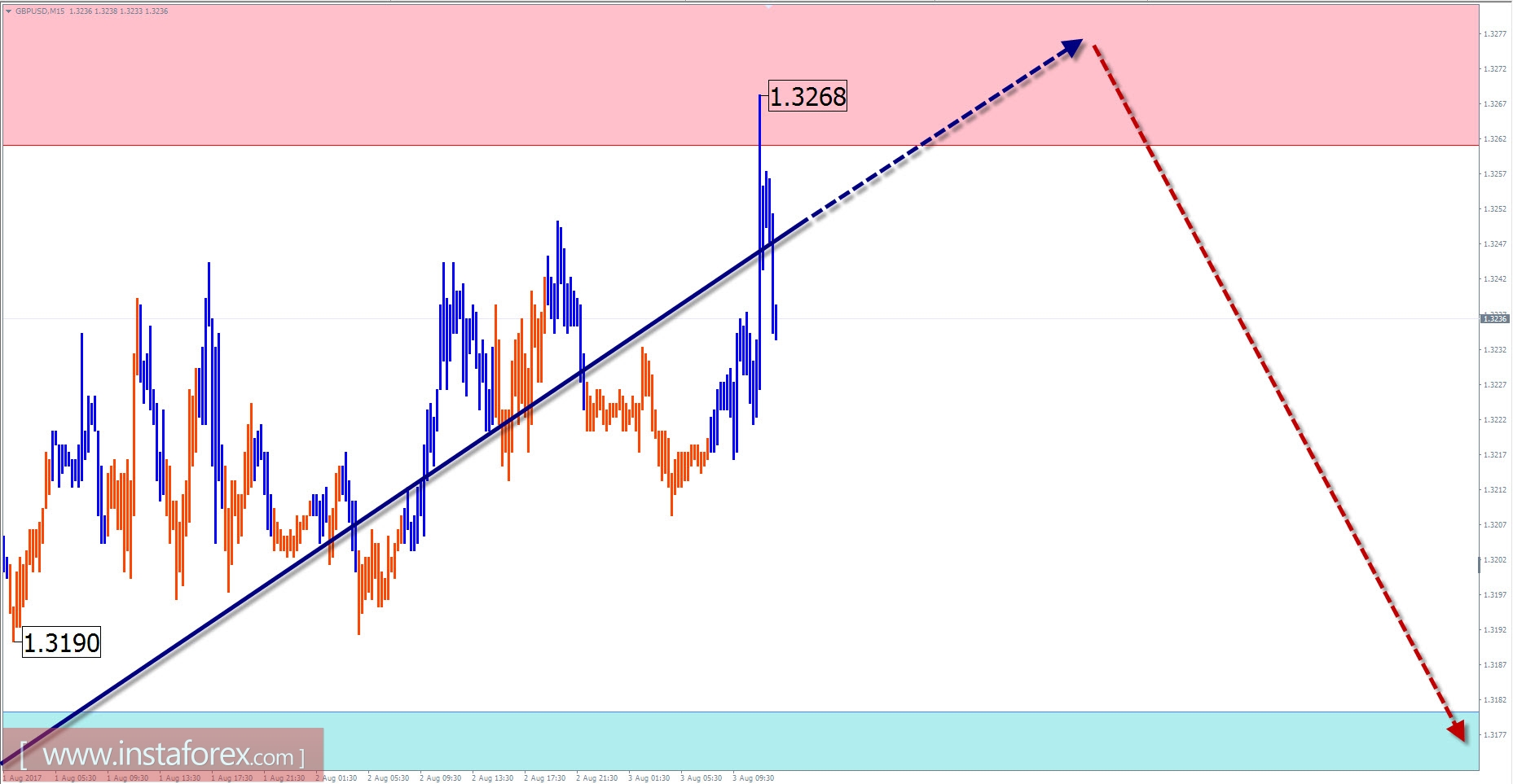 В результате развития последней восходящей волны основной пары британской валюты, цена пары достигла нижней границы критического участка графика. Здесь вероятность смены курса движения резко возрастает. Учитывая коррекционный характер текущей восходящей волны и завершенность ее структуры на сегодня, такой сценарий вполне вероятен. Пока сигналы непосредственного разворота на графике не наблюдаются, но могут возникнуть уже на ближайшей сессии.