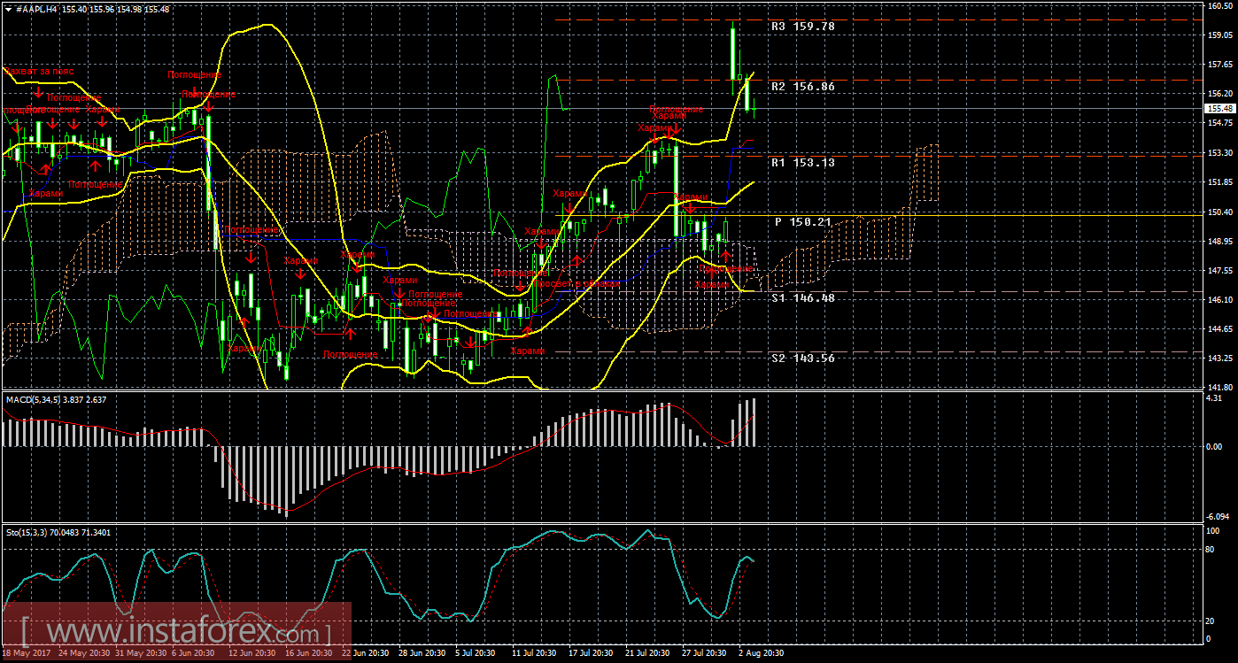Технический и свечной анализ акций Apple на 4 августа 2017 года