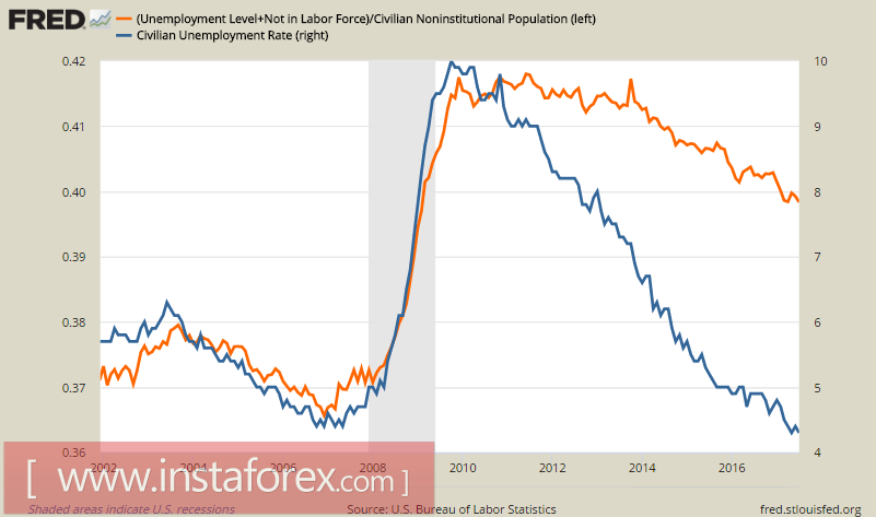 В то же время более широкий расчет безработицы, заключающийся в отношении общего количества безработных и выпадающих и состава рабочей силы к общему количеству трудоспособного населения, выглядит не настолько убедительно и указывает на ставку по безработице около 8%.