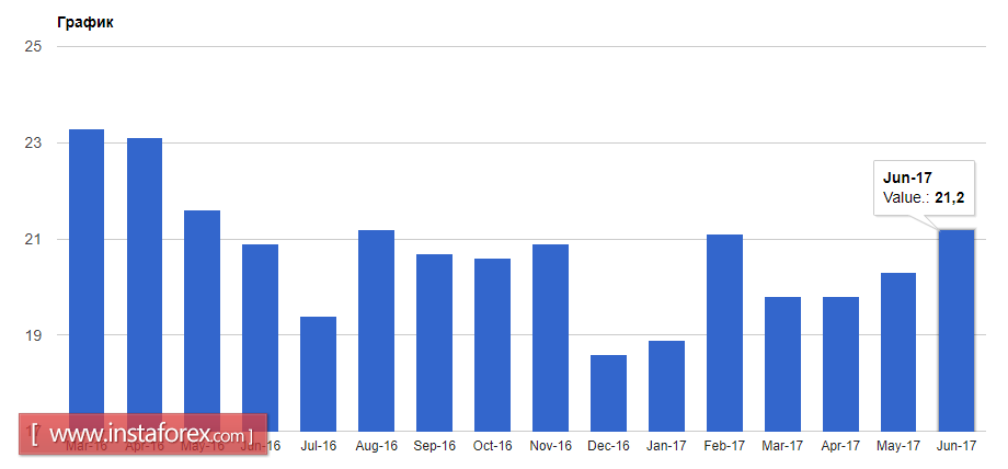 Как указано в отчете, экспорт Германии в июне этого года по сравнению с маем сократился на 2,8%, тогда как сокращение импорта составило 4,5%. Положительное сальдо внешней торговли Германии в июне составило 21,2 млрд евро, тогда как экономисты прогнозировали сальдо на уровне 21,4 млрд евро. Напомню, что еще в мае этого года положительное сальдо впервые перешло за отметку в 20 млрд евро.