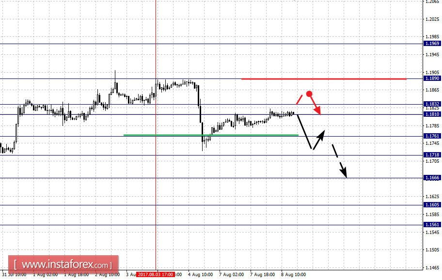 По паре Евро/Доллар ключевыми уровнями в масштабе Н1 являются: 1.1969, 1.1890, 1.1832, 1.1810, 1.1761, 1.1718, 1.1666, 1.1605 и 1.1561. Здесь мы продолжаем следить за формированием нисходящей структуры от 3 августа. Продолжения движения книзу ожидаем после пробоя 1.1761, в данном случае цель – 1.1718, возле этого уровня консолидация. Пробой уровня 1.1715 приведет к движению до уровня 1.1666, пробой которого должен сопровождаться выраженным движением к уровню 1.1605. Потенциальным значением для низа считаем уровень 1.1561, по достижении которого ожидаем уход в коррекцию.
