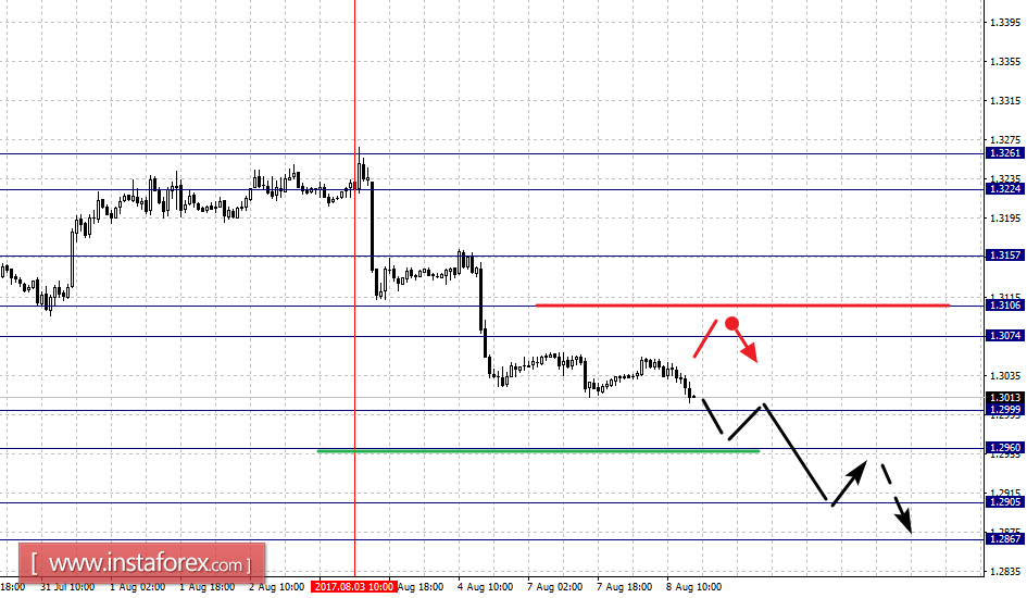 Краткосрочное восходящее движение возможно в коридоре 1.3074 – 1.3106, пробой последнего значения приведет к углубленному движению, здесь цель – 1.3155, этот уровень является ключевой поддержкой для нисходящей структуры от 3 августа.