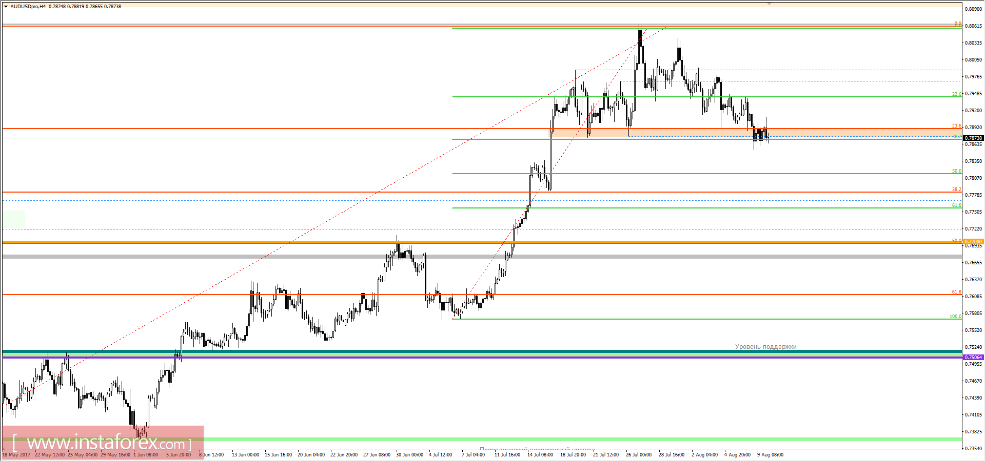 Технический анализ и торговые рекомендации по валютной паре AUDUSD на 10 августа 2017 года