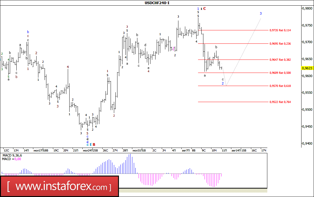 Волновой анализ валютной пары USD/CHF за 11 августа 2017 года