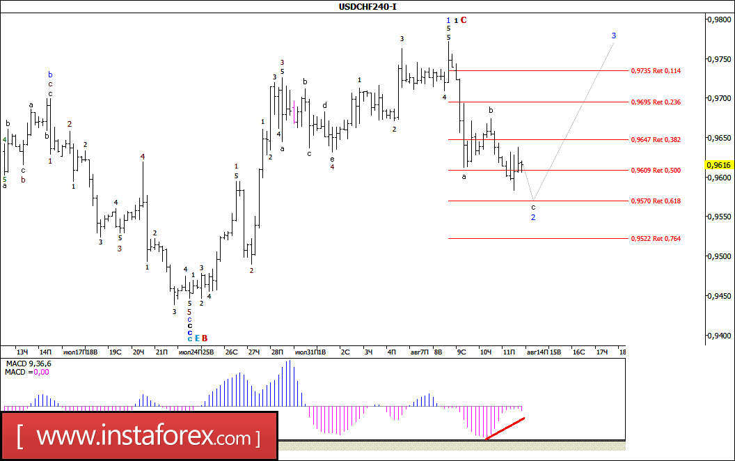 Волновой анализ валютной пары USD/CHF за 14 августа 2017 года