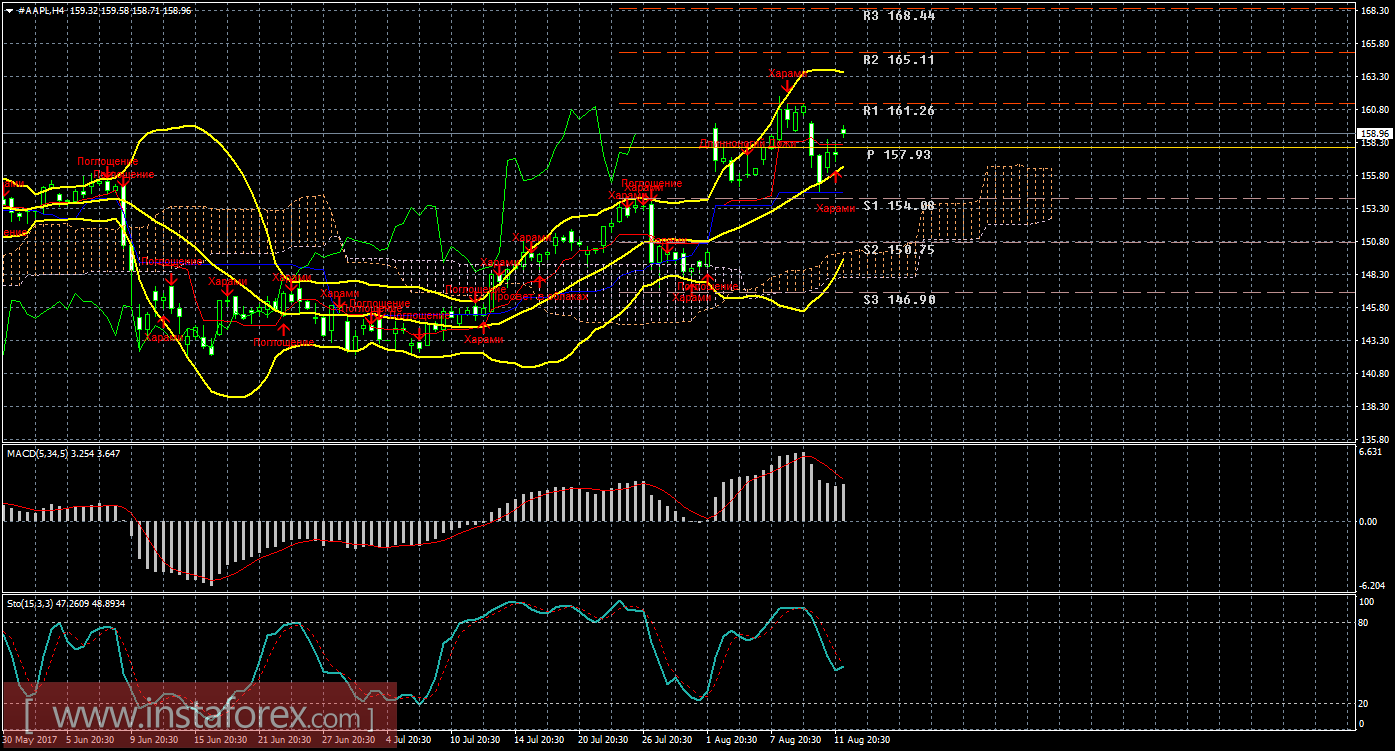 Технический и свечной анализ акций Apple на 14 августа 2017 года