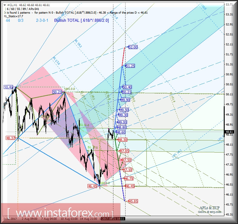 Развитие движения цены инструмента (#CL) в период 22 - 29 августа 2017 г. будет обусловлено отработкой границ зоны равновесия (48.80 <-> 48.30 <-> 47.85) вил операционного масштаба Micro.