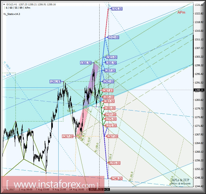 Gold Spot h1. Варианты развития движения с 22 августа 2017 г. Анализ APLs & ZUP