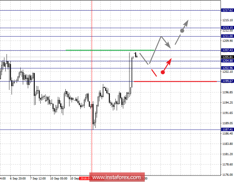 Краткосрочное нисходящее движение возможно в коридоре 1204.80 – 1202.96, пробой последнего значения приведет к углубленной коррекции, здесь цель – 1199.67, этот уровень является ключевой поддержкой для верха.