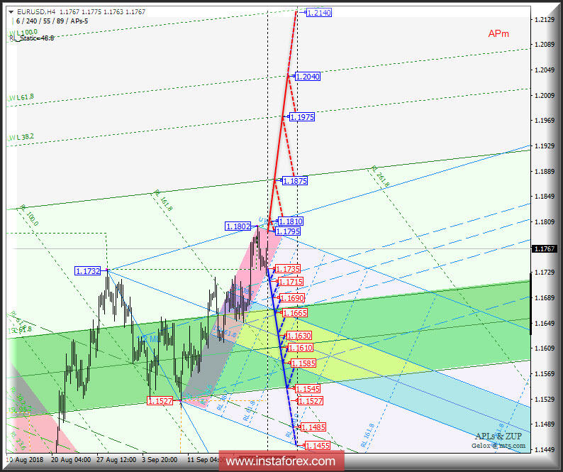 EUR/USD h4. Варианты развития движения 25.09_05.09.2018 г. Анализ APLs & ZUP