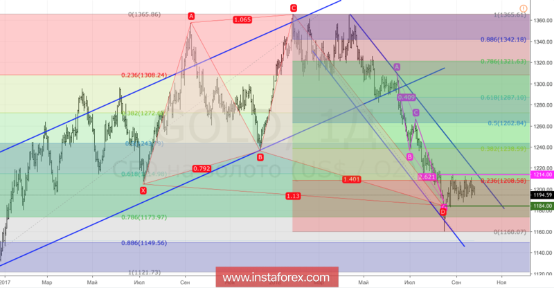 Технически выход драгметалла из торгового диапазона $1184-1214 за унцию позволит ему определиться с направлением дальнейшего движения. Прорыв верхней границы усилит риски ралли в направлении $1240 и $1260. Напротив, успешный штурм поддержки на $1184 откроет «медведям» дорогу на юг.