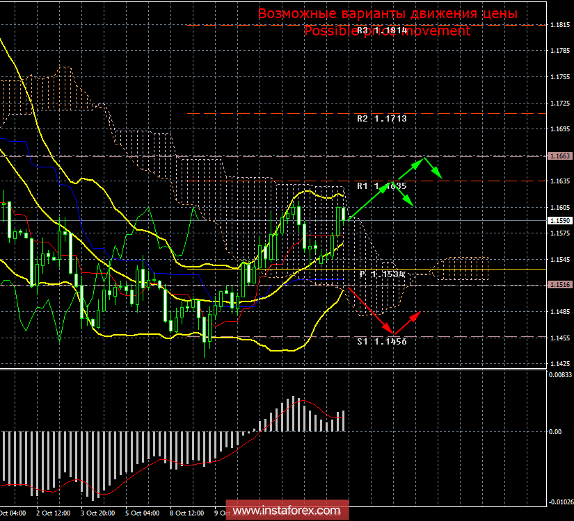 В понедельник, 15 октября, пара торговалась как по «учебнику». Завершив однодневную нисходящую коррекцию около критической линии, возобновила восходящее движение, подтвердив наши догадки о том, что в пятницу трейдеры просто фиксировали прибыль перед выходными. Таким образом, несмотря на то что «золотой крест» остается слабым, восходящий тренд сохраняется. В первый торговый день недели в Европе не было ни одной важной макроэкономической публикации. В Штатах же сегодня был опубликован отчет по розничным продажам. С учетом продаж транспорта показатель прибавил всего 0,1%, что гораздо ниже прогнозного значения. Без учета – снизился на 0,1%, что также ниже прогноза. Таким образом, на американской торговой сессии на доллар создалось дополнительное давление, связанное с негативной макроэкономической статистикой. Однако даже для пары EUR/USD одним из важнейших событий текущей недели станет саммит ЕС, на котором будут проведены очередные переговоры относительно Brexit. Обе стороны рассматривают этот саммит чуть ли не как последнюю возможность договориться. Рынок сейчас переполнен слухами о ходе переговоров по Brexit, большая часть которых никак и ничем не подтверждается. Однако если Лондону и Брюсселя не удастся договориться и это будет официальная информация, то, скорее всего, евро также попадет под распродажи, как и фунт стерлингов. В то же время мы продолжаем рассматривать тренд от 9 сентября как коррекционный. Таким образом, общая тенденция, долгосрочная, остается за долларом США.