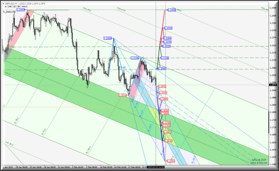 #USDX vs EUR/USD & GBP/USD - h4 - технические уровни для торговли - обзор вариантов движения - с 27 февраля 2023 г.