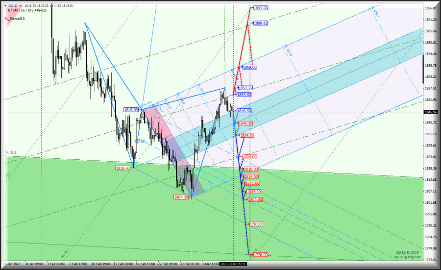 С 8 марта 2023 г. Spot Gold-h4 продолжит развитие своего движения в канале 1/2 Median Line (1889.62 - 1854.50 - 1824.00) вил старшего операционного масштаба Minute-h4 в зависимости от отработки и направления пробоя диапазона: