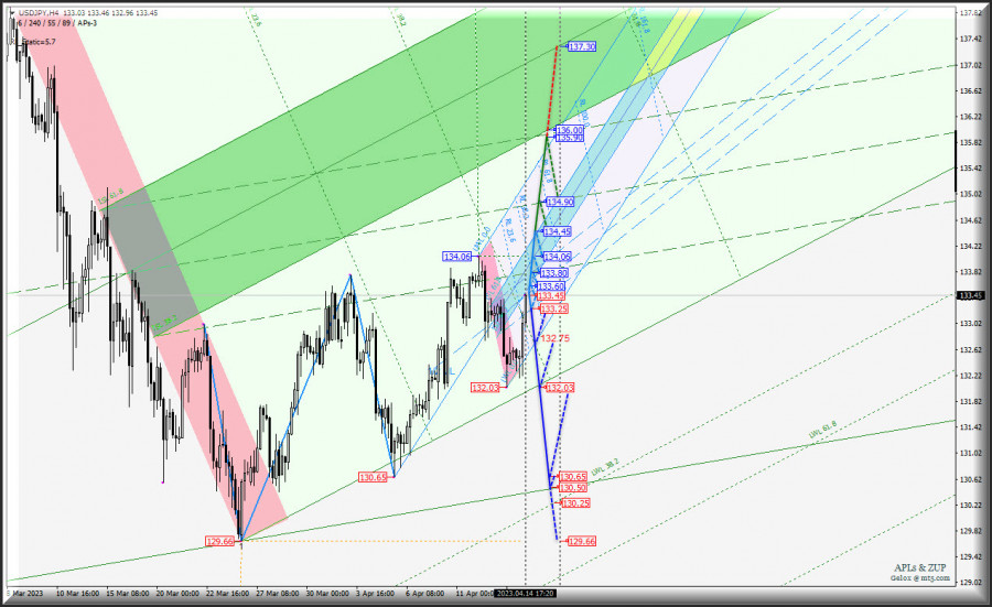 Japanese Yen - то вверх - то вниз. Ждем определенность... USD/JPY и Euro & Great Britain Pound vs Japanese Yen - h4 - Комплексный анализ APLs & ZUP c 17 апреля 2023