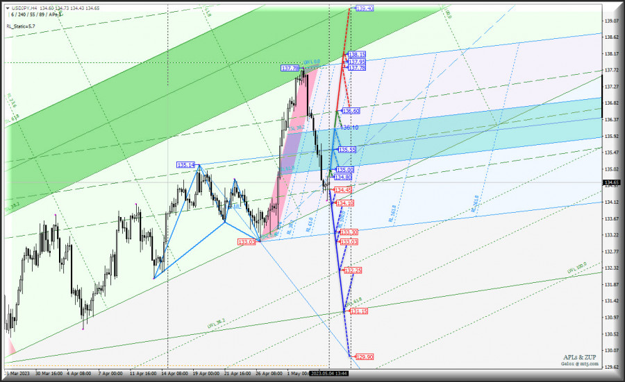 Неужели Japanese Yen стала дорожать? USD/JPY и Euro & Great Britain Pound vs Japanese Yen - h4 - Комплексный анализ APLs & ZUP c 5 мая 2023