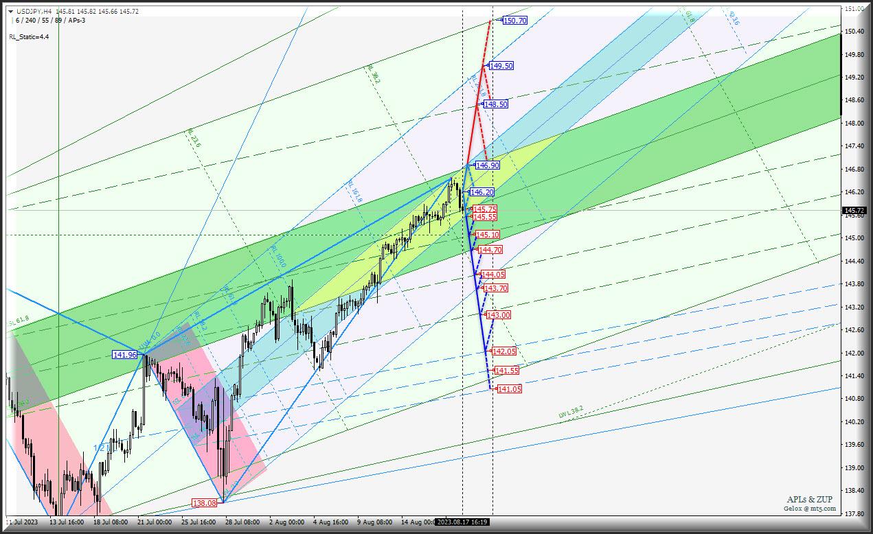 Japanese Yen - никак не решится подорожать? USD/JPY и Euro & Great Britain Pound vs Japanese Yen - h4 - Комплексный анализ APLs & ZUP c 18 августа 2023