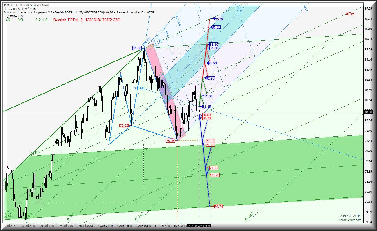 Crude Light Sweet Oil - конец августа - продолжение движения вниз? Комплексный анализ - Вилы Эндрюса APLs & ZUP - с 23 августа 2023