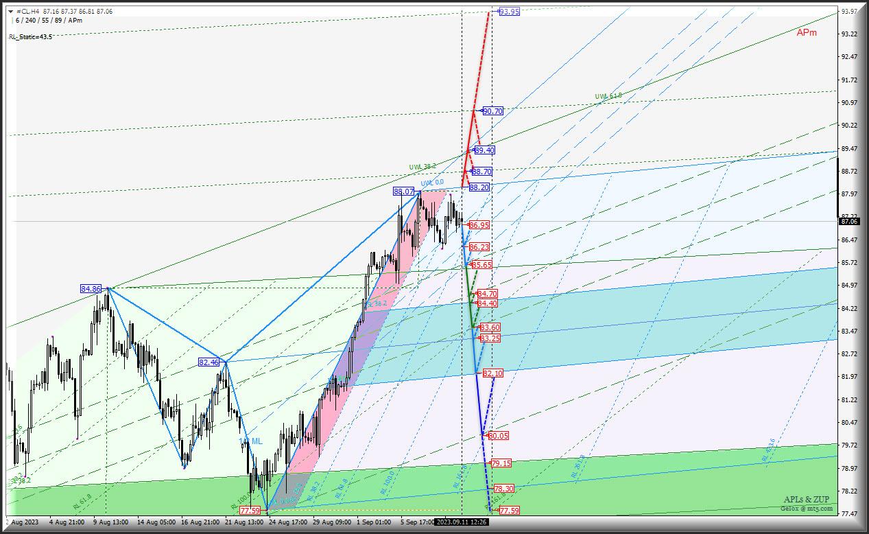 Нефть -Crude Light Sweet Oil - затишье перед продолжением роста? Комплексный анализ - Вилы Эндрюса APLs & ZUP - c 11 сентября 2023