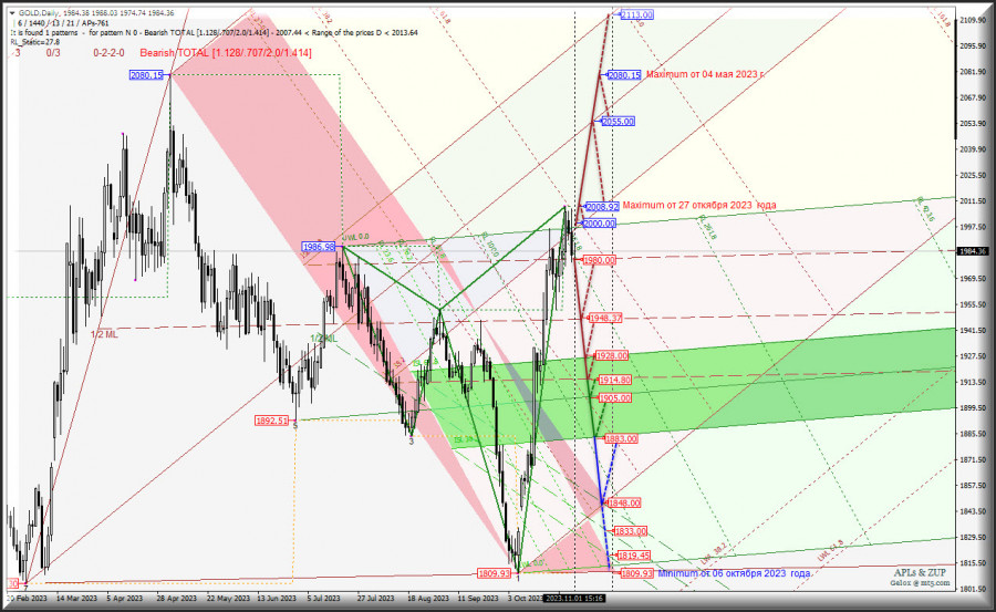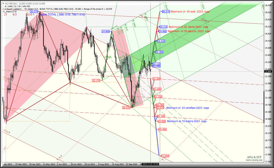 Spot Gold в ноябре будет дороже 2000$ - а Spot Silver - дороже 23$? Комплексный анализ - вилы Эндрюса APLs & ZUP - со 2 ноября 2023 г.