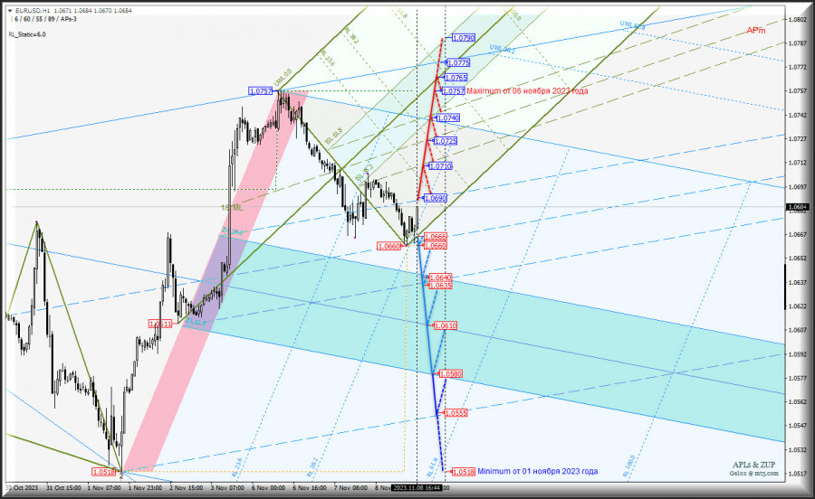 Внутридневные торговые уровни EURO/USD на 9 и10 ноября 2023 г. Комплексный анализ APLs & ZUP