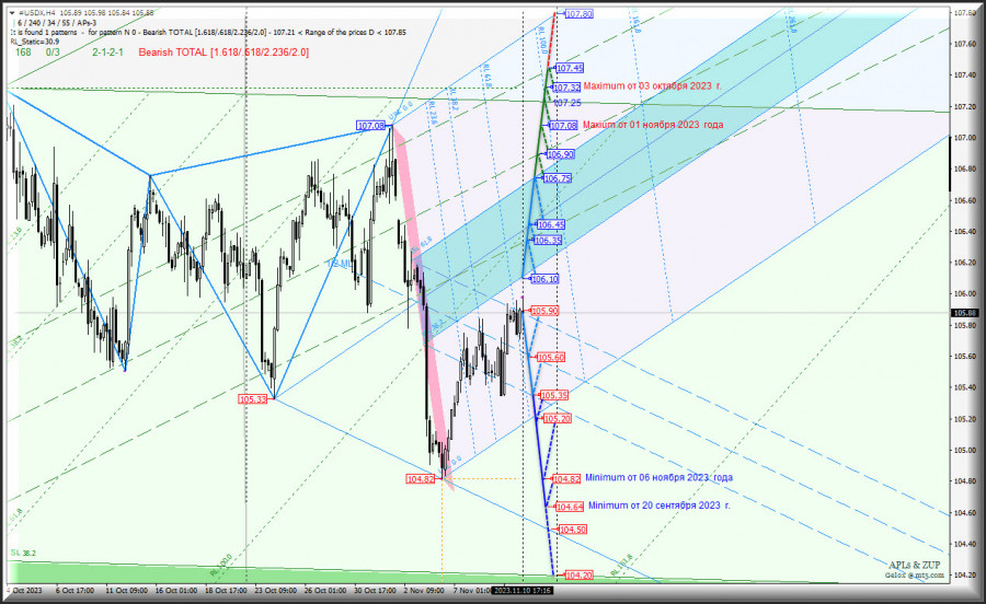 #USDX - h4 - технические уровни для торговли - обзор вариантов движения - с 13 ноября 2023 г.