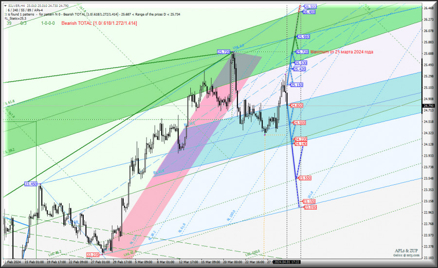Spot Silver - за 1,5 месяца +17,47% - на этом остановимся? Комплексный анализ (с анимационной разметкой) - вилы Эндрюса APLs & ZUP - с 02 апреля 2024