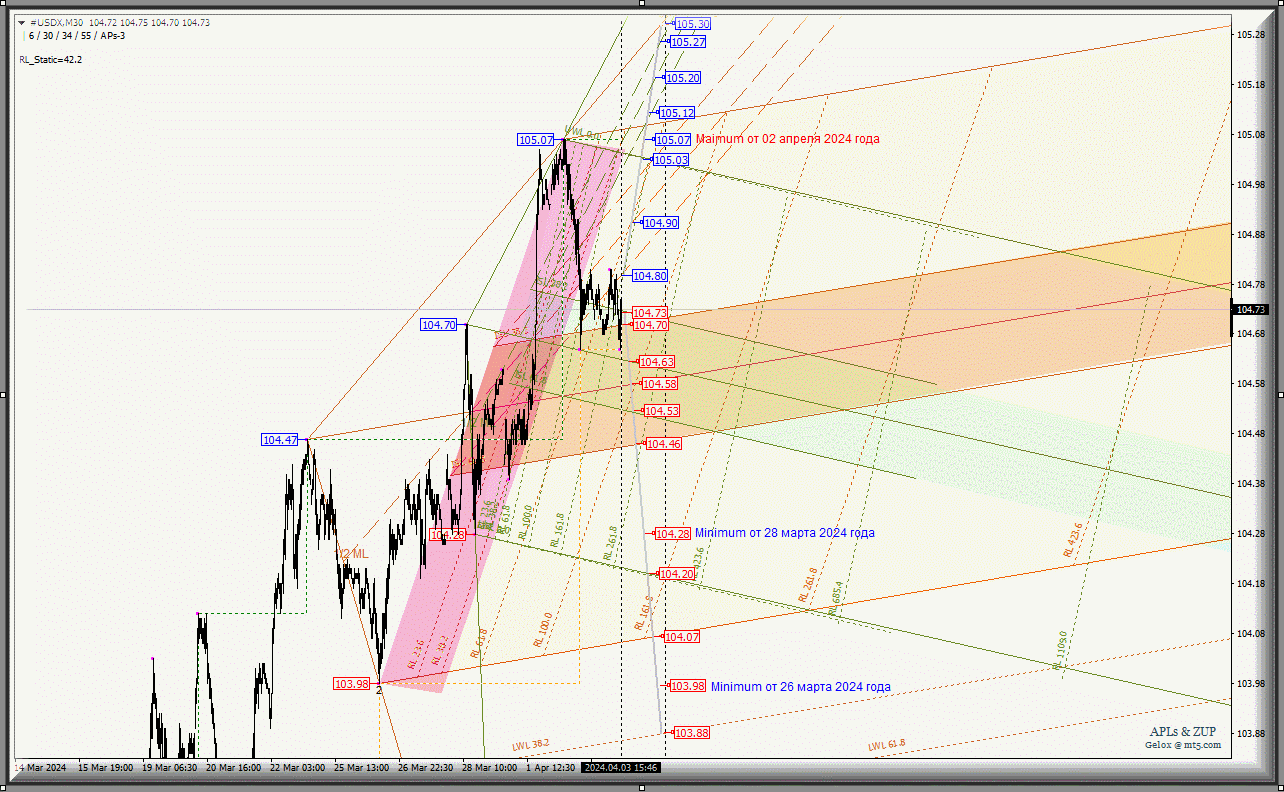 #USDX SubMinuette-m30 - обзор вариантов движения - 03-05 апреля 2024 года.