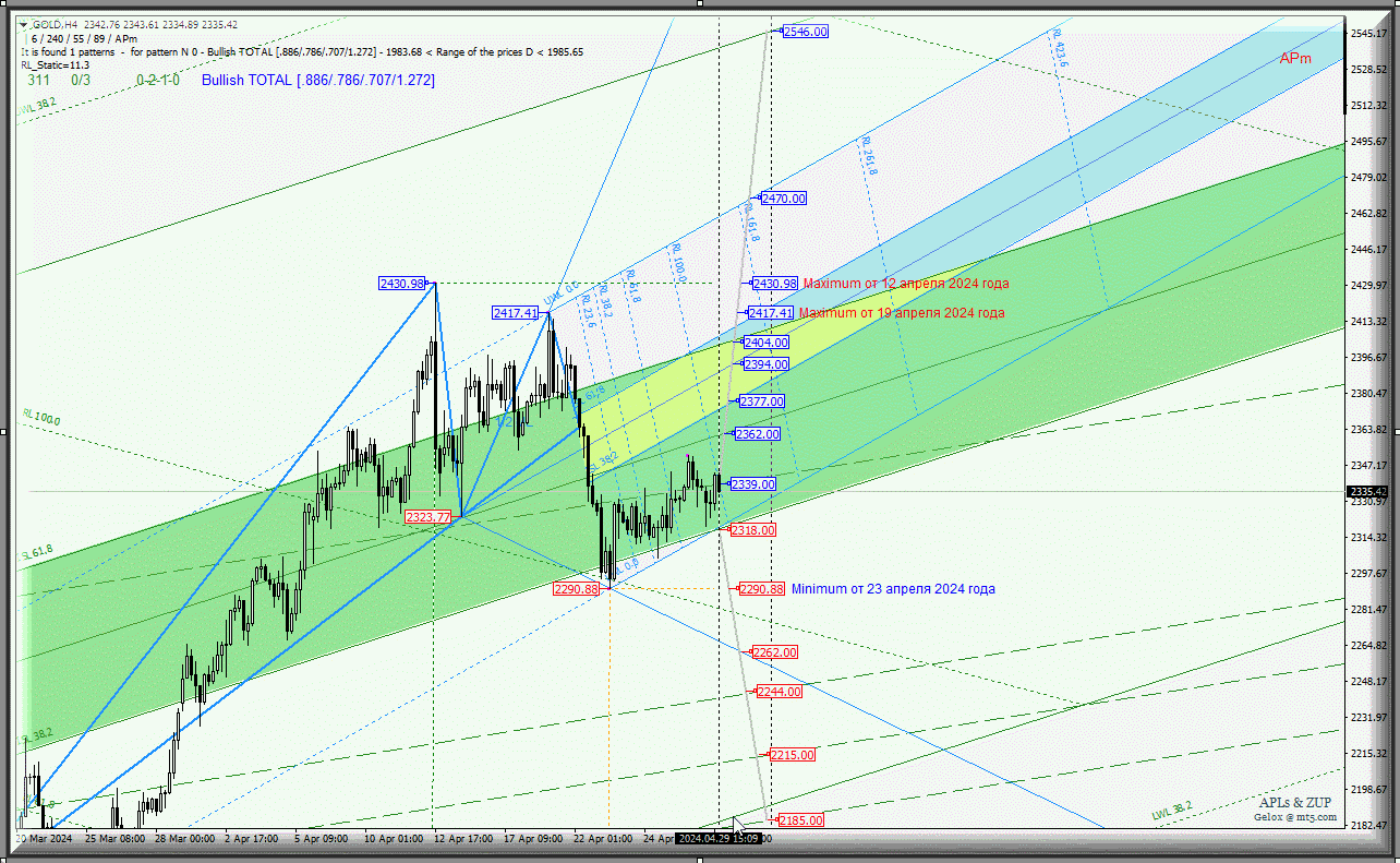 Spot Gold — начало мая 2024 года — продолжим снижение? Комплексный анализ (с анимационной разметкой) — вилы Эндрюса APLs & ZUP — с 30 апреля 2024 г.