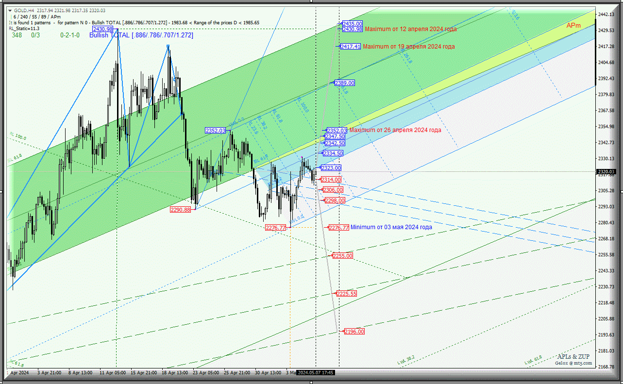Spot Gold - попытки снижения идут с переменным успехом? Комплексный анализ (с анимационной разметкой) - вилы Эндрюса APLs & ZUP - с 8 мая 2024