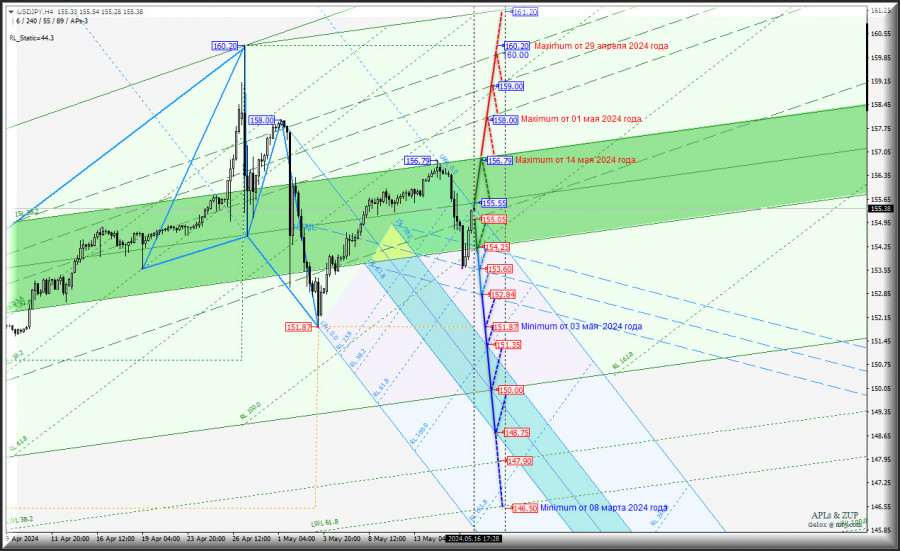Движение USD/JPY-h4 с 17 мая 2024 года продолжится в зоны равновесия (153.50 - 154.80 - 156.20) вил старшего операционного масштаба Minute-h4 с учетом отработки и направления пробоя диапазона: