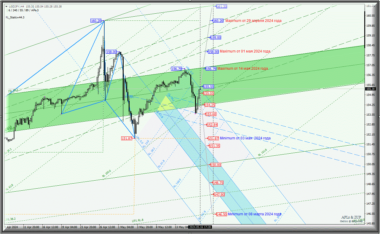 Japanese Yen - локально дорожаем - локально дешевеем... Диапазон однако. Комплексный анализ (с анимационной разметкой) APLs & ZUP с 17 мая 2024