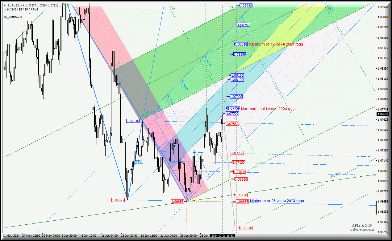 Euro vs US Dollar - дешеветь пара не захотела - продолжится ли рост? Комплексный анализ (с анимационной разметкой) - APLs & ZUP - с 04 июля 2024 года