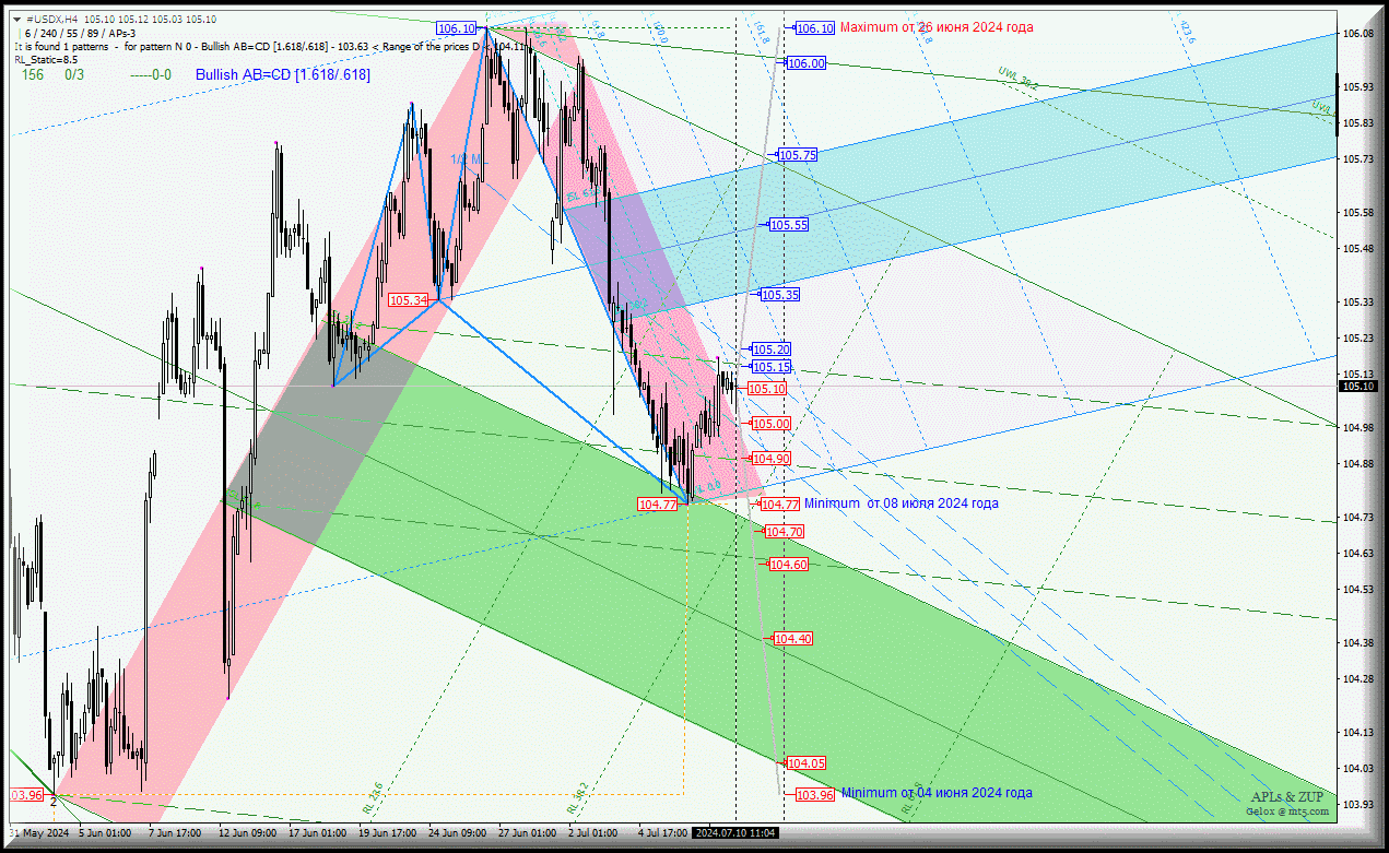 #USDX -h4 - обзор вариантов движения - с 10 июля 2024 г.