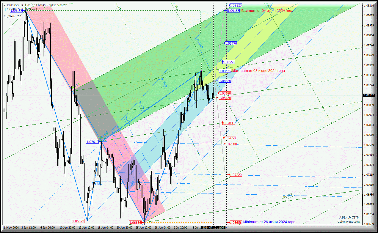 Euro vs US Dollar - силы иссякли - идем вниз? Комплексный анализ (с анимационной разметкой) - APLs & ZUP - с 10 июля 2024 года
