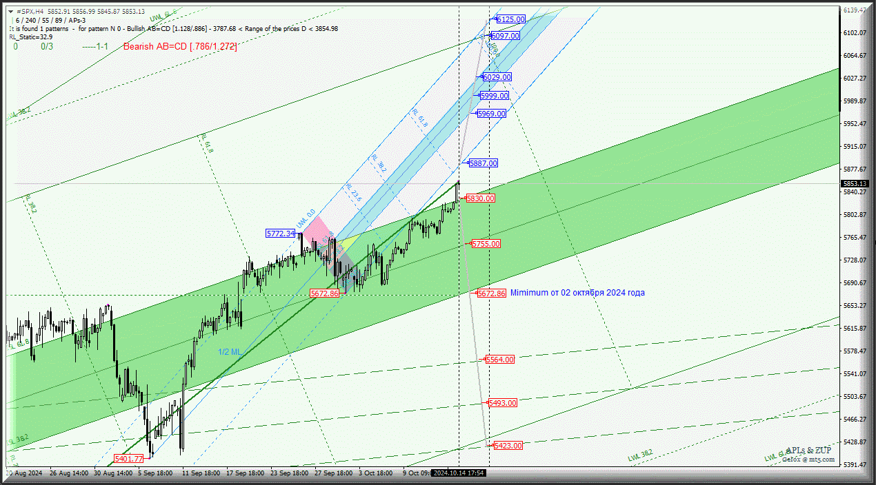 Основные технические уровни для торговли #SPX - h4 - обзор вариантов движения c 15 октября 2024 года.