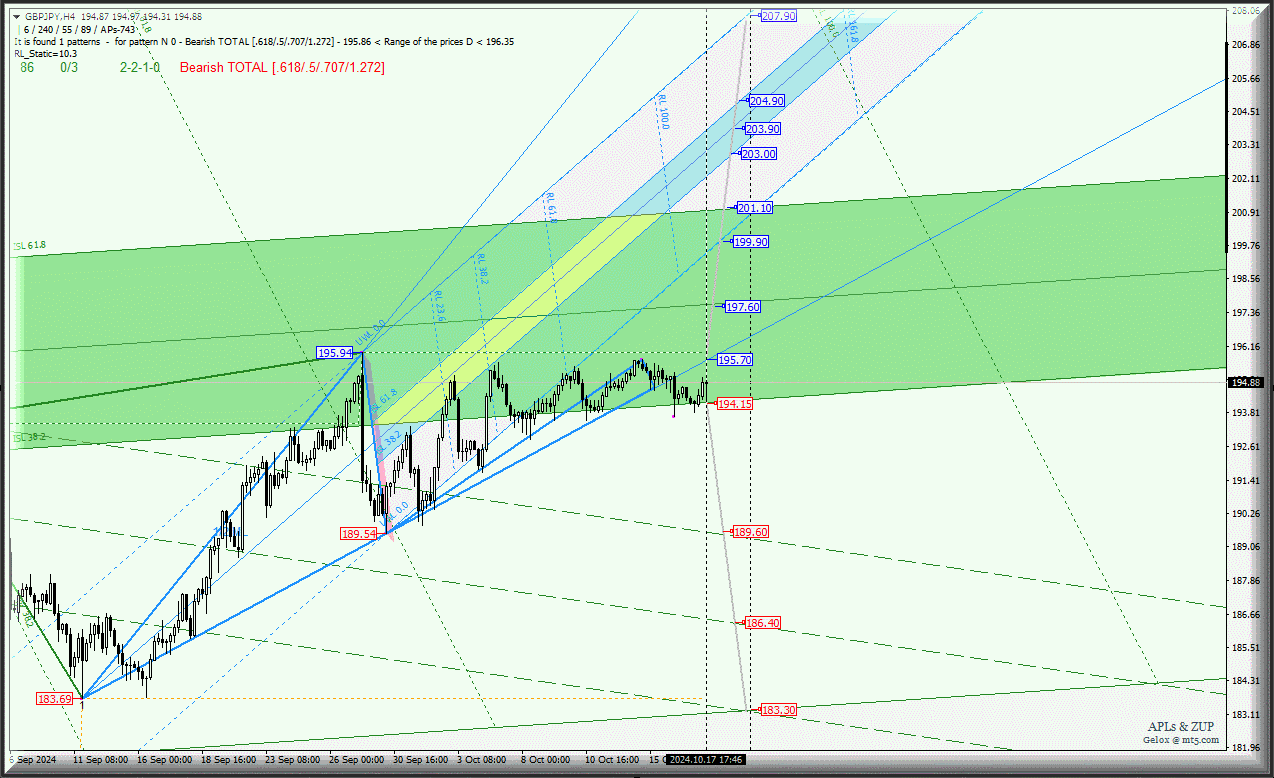 Great Britain Pound vs Japanese Yen - h4 - основные уровни для торговли. Комплексный анализ (с анимационной разметкой) APLs & ZUP с 18 октября 2024