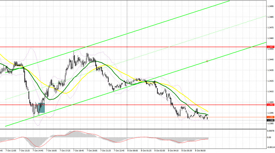 Вчера было образовано несколько точка входа в рынок. Давайте посмотрим на 5-минутный график и разберемся с тем, что там произошло. В своем утреннем прогнозе я обращал внимание на уровень 1.3457 и планировал от него принимать решения по входу в рынок. Прорыв и обратный тест 1.3457 привели к точке входа на продажу фунта, что вылилось в падение пары более чем на 30 пунктов. Во второй половине дня ложный пробой в районе 1.3402 привел к хорошей точке входа на покупку фунта, после чего пара восстановилась в район целевого уровня 1.3457.