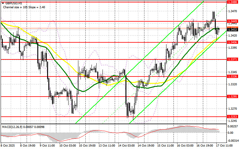 Продавцы проявили себя и вряд ли стоит ожидать активных действий покупателей в конце недели. По этой причине действовать собираюсь уже после формирования ложного пробоя в районе 1.3449 по аналогии с тем, что я разбирал выше. Это даст точку входа в рынок с целью падения к поддержке 1.3406. Прорыв и обратный тест снизу вверх этого диапазона приведут к сносу стоп-приказов, открыв путь к 1.3371. Самой дальней целью выступит область 1.3336, где собираюсь фиксировать прибыль. Если спрос на фунт вернется во второй половине дня, а медведи не проявят себя в районе 1.3449, фунт продолжит бычий рынок. В таком случае продажи лучше отложить до теста сопротивления 1.3488. Открывать там короткие позиции буду только на ложном пробое. При отсутствии движения вниз и там короткие позиции на отскок поищу в районе 1.3525, но лишь в расчете на коррекцию пары вниз на 30-35 пунктов внутри дня.